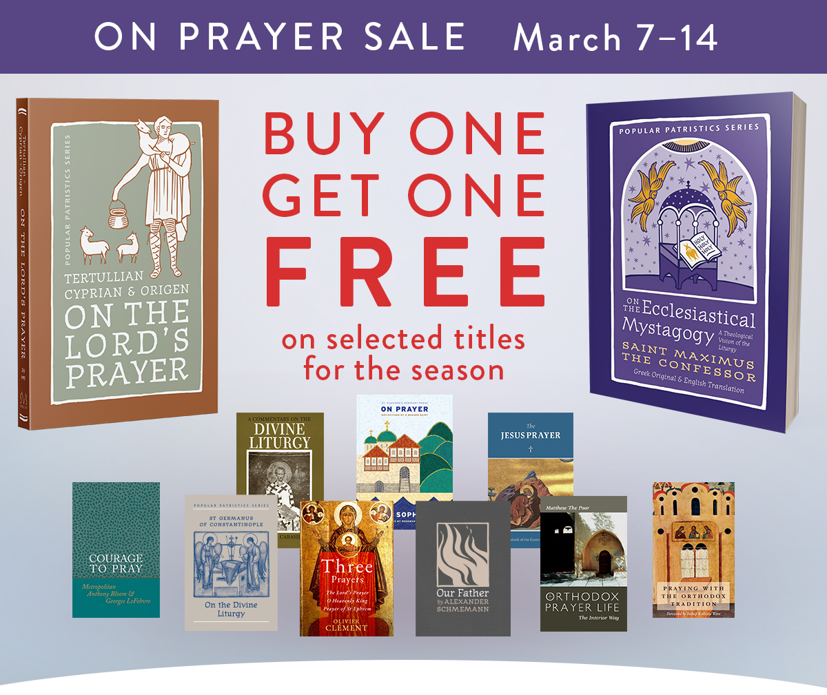 March 7–14, 2026, enjoy a special Lenten Buy One, Get One Free offer on select SVS Press print titles featured on this page. Deepen your Great Lent reading, build your home library, or share a trusted Orthodox book with a friend—when you purchase one featured print title, you’ll receive a second book of equal or lesser value free. Offer valid on select SVS Press print books only and cannot be combined with other sales, discounts, or promotions.